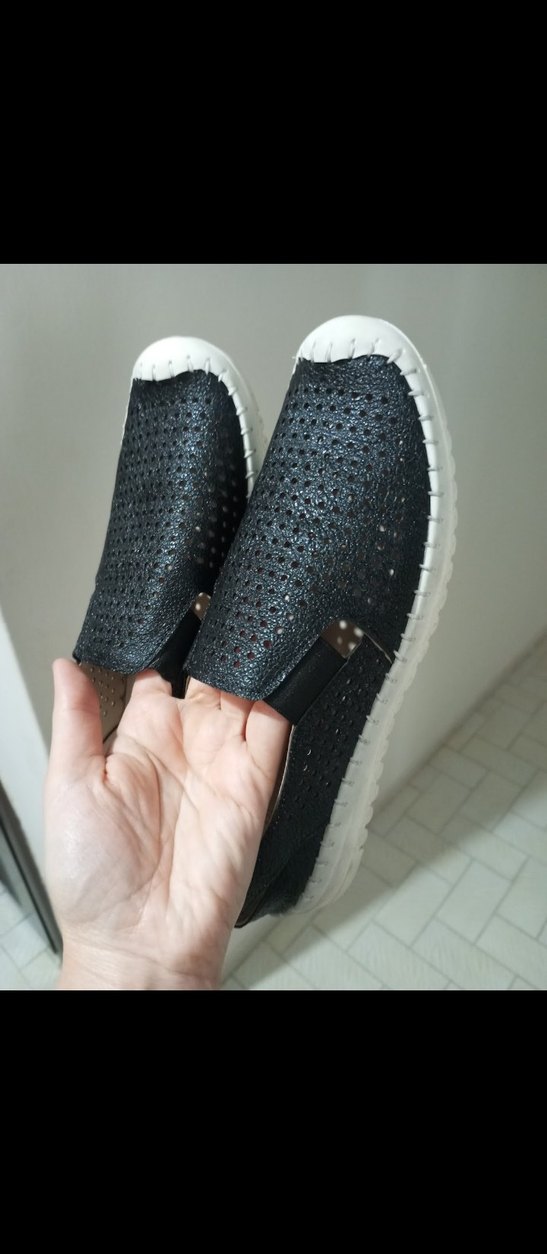 Siyah renkte, dolgu topuklu ve tokalı kadın espadril. Kauçuk malzemeden, sokak stili ve günlük kullanım için uygundur.