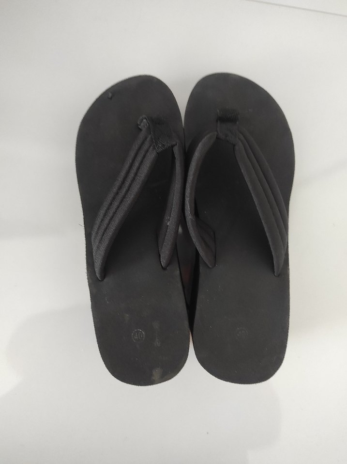 Siyah renk, dolgu topuklu kadın terliği. Kauçuk malzemeden, minimalist ve desensiz tasarıma sahip, günlük kullanıma uygun rahat ve sade stil.