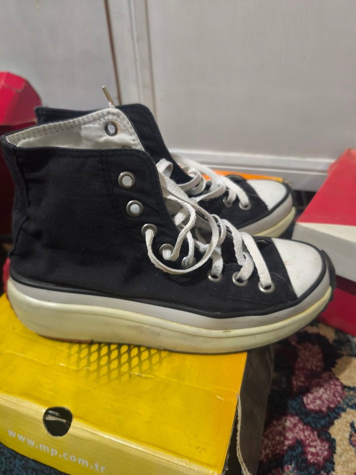 Bu siyah kadın spor ayakkabılar, dolgu topuk ve kauçuk tabanlıdır. Günlük sokak stili için uygun, renkli ve zahmetsiz şıklık sunar.