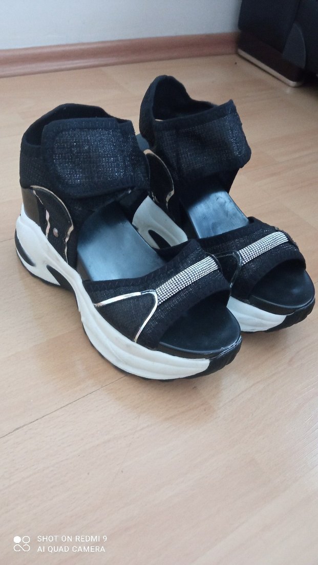 Siyah Kadın Dolgu Topuklu Sandalet 38 sıfır 1 kez giydim