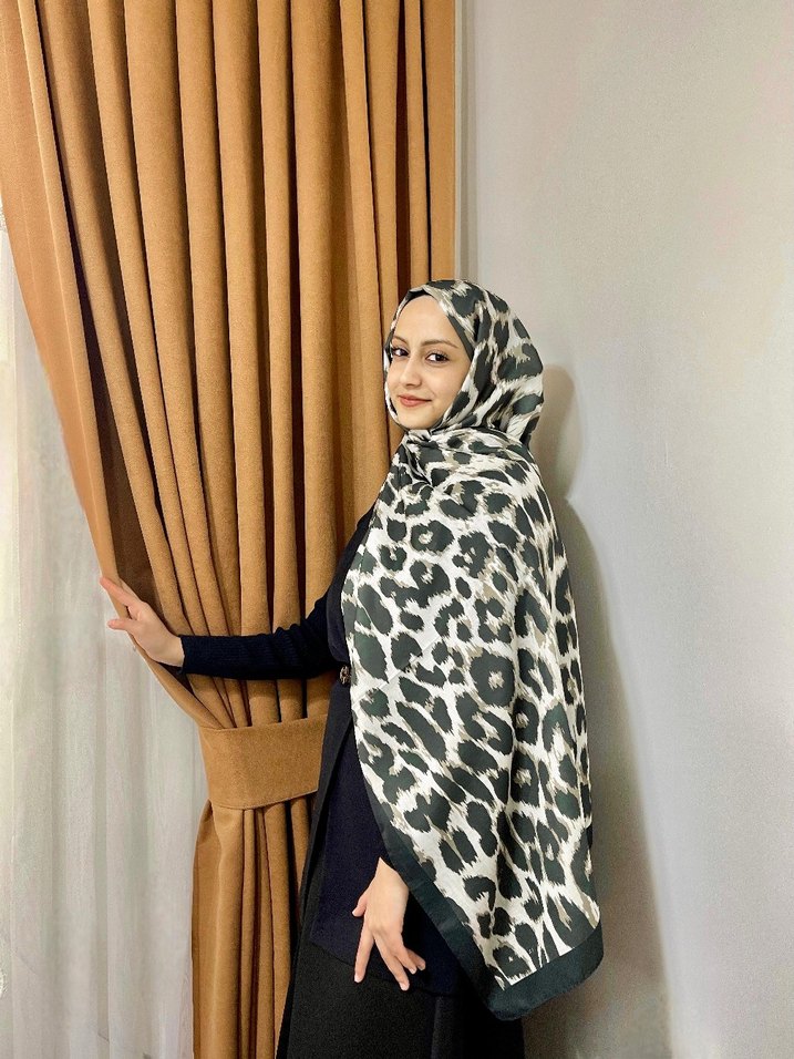 Siyah renkte, yumuşak sentetik kumaştan drapeli modern şal, rahat ve mütevazı bir tarz sunar.