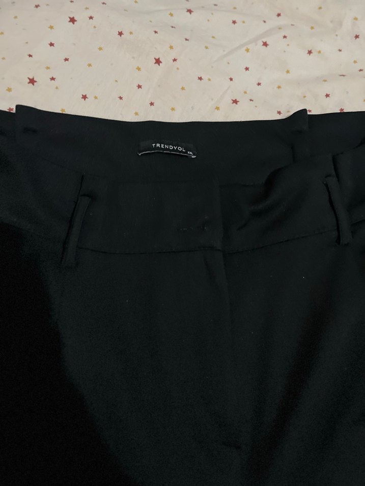 Siyah kumaştan, düğmeli ve normal kesim pantolon. Ofis kullanımı için uygun, notmal boy ve normcore tarzında, şık ve rahat bir seçenek.