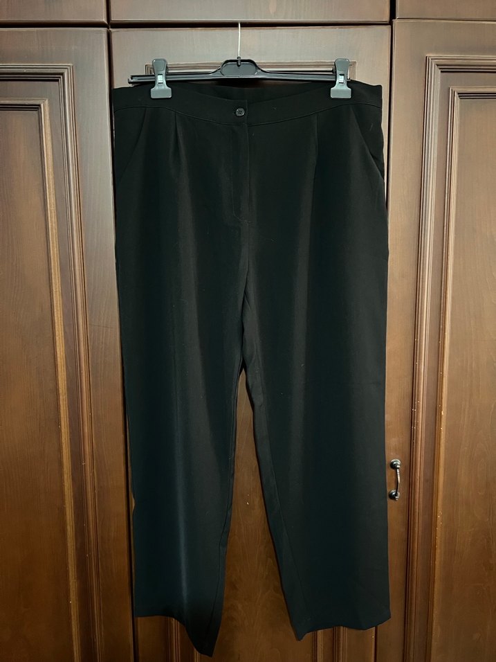 Siyah, kemerli, normal boy, regular fit kadın kumaş pantolon. Ofis ve günlük iş tarzına uygun, ipeksi dokulu rahat bir model. Ürünü bir kez kullanıp yıkadım. Hiçbir hasarı yok. Bedeni yok terziye diktirmiştim ölçüleri; bel 100cm basen 72 cm bacak boyu 1 m