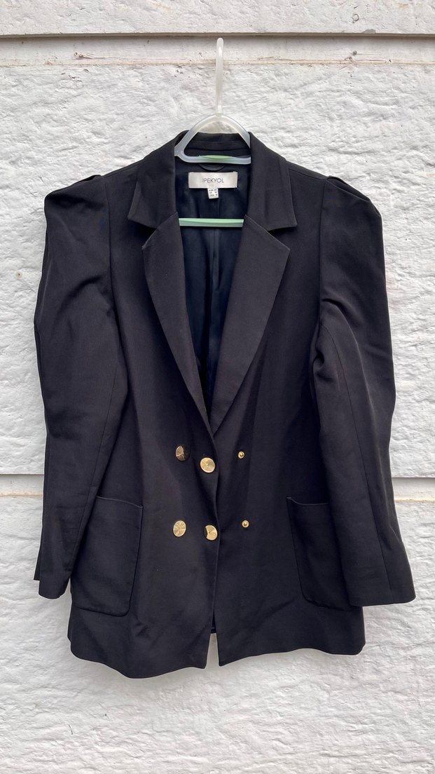 Siyah, düğmeli ve normal uzunlukta midi blazer. Notch yakalı, uzun kollu ve ipeksi dokuda, klasik şıklık için uygun bir iş Orjinal marka Orjinal ürün. Çıtçıt kapama detaylı astarlı blazer ceket. Boy 76, Kol 63, Omuz 35, Etek ucu 50, Göğüs 50 Cm. Deformesiz. 57 Viskoz , 41 Modal, 2 Elastan. #Zara#Mango#Bershka#PullAndBear#Mavi#Colins#Defacto#Collection#Penti#Stradivarius#Adilışık#KemalTanca#Koton#LcWaikiki#H&M#HM#TommyHilfiger#Adidas#Tekbir#ParkBravo#Topshop#Nike#FaikSönmez#AmericanVintage#Columbia#Levis#Oxxo#MarksSpencer#Trendyol#Aber#AnnaBella#AlexanderWang#Uspolo#Decatlhon#Kappa#Maybelline#LorealParis#Kazak#Mont#Kaban#Palto#Jean#Kot#Pantolon#Momjean#Hırka#Vintage#Bot#Ayakkabı#Unisex#Erkek#Kadın#Sweatshirt#Tunik#Ceet#Blazer#Gömlek#Büstiyer#Trençkot#Pardösö#Dericeket#Kotceket#Peluş##Parka#Yağmurluk#Rüzgarlık#Etek#Uzunetek#Kısaetek#Şort#Tulum#Tayt#Elbise#Giyim#Çanta#Cüzdan#Angelpolo#Boyner#Hummel#Triko#Beymen#Hotiç#Tozlu#İpekyol#Dilvin#Gucci#Retro#Dolap#Vakko