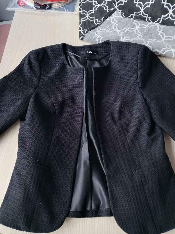 Siyah renkte, düğmeli, uzun kollu, midi boyda, regular fit kadın blazer. Ofis ortamına uygun klasik şıklıkta, sentetik kumaştan yapılmıştır.