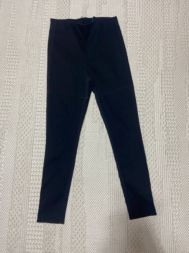 Siyah renk, elastik bel bandı ve sentetik kumaştan üretilmiş, günlük kullanıma uygun, düz ve midi boy kadın kumaş pantolon.