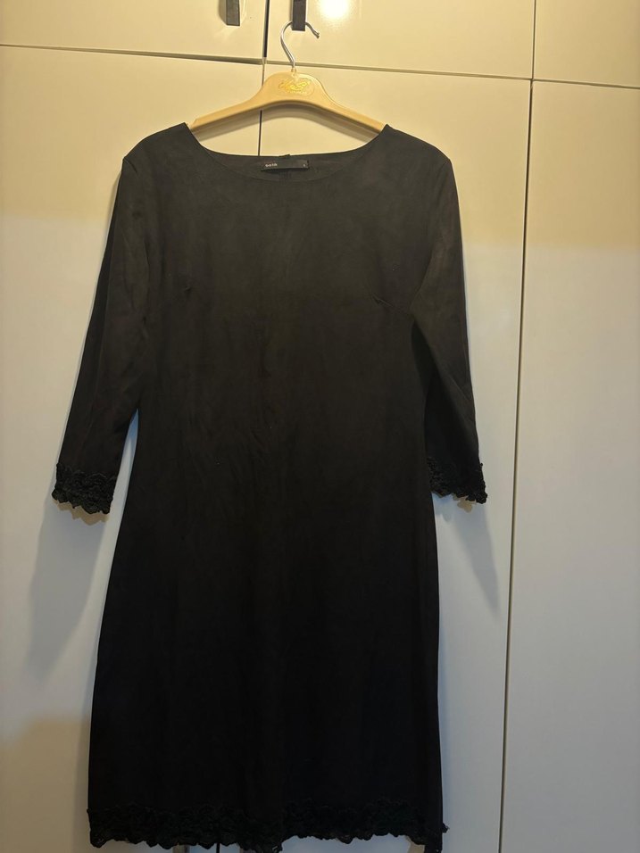 uzun kollu, siyah midi elbise. Düz ve gotik tarzda, ofis için uygun.