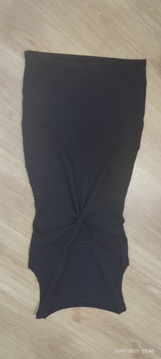 Siyah dokulu kumaşı olan bel bölgesi açık kolsuz elbise