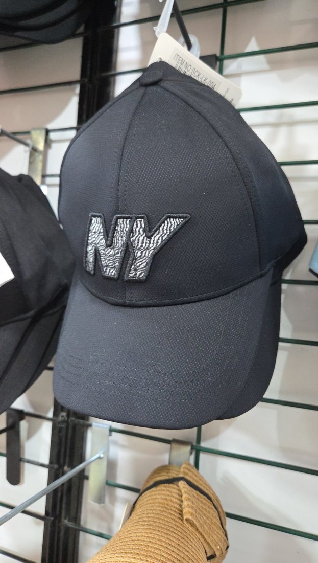 Siyah renkte, sentetik kumaştan yapılmış ve ayarlanabilir Velcro bantlı kadın spor şapkası. Önünde 'NY' yazılı işlemeli detay bulunur.