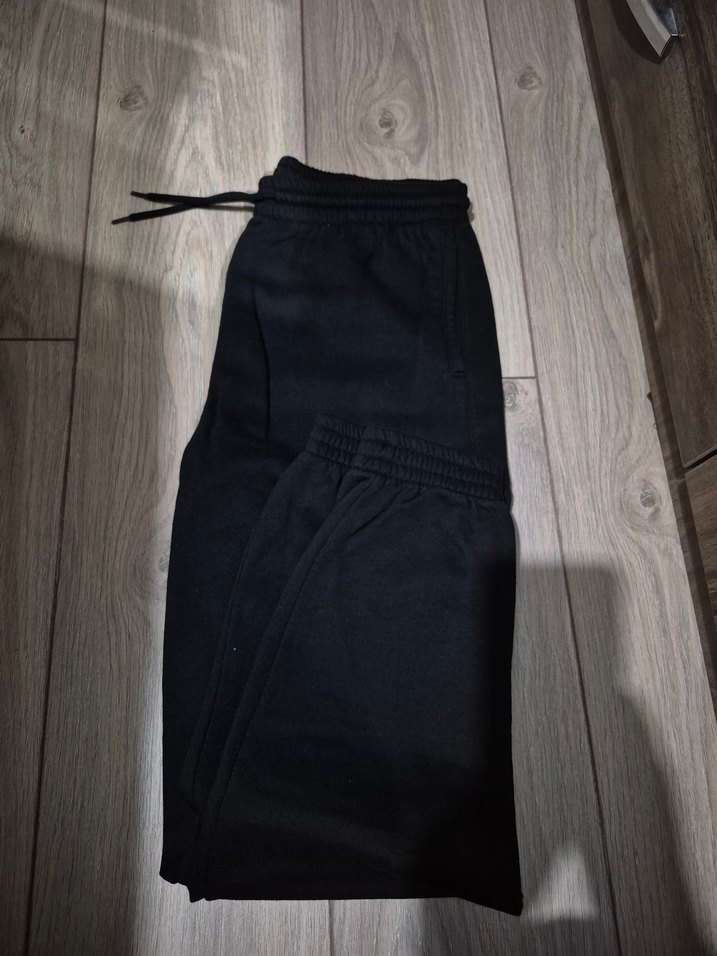 Siyah, yumuşak kumaştan yapılmış eşofman altı.