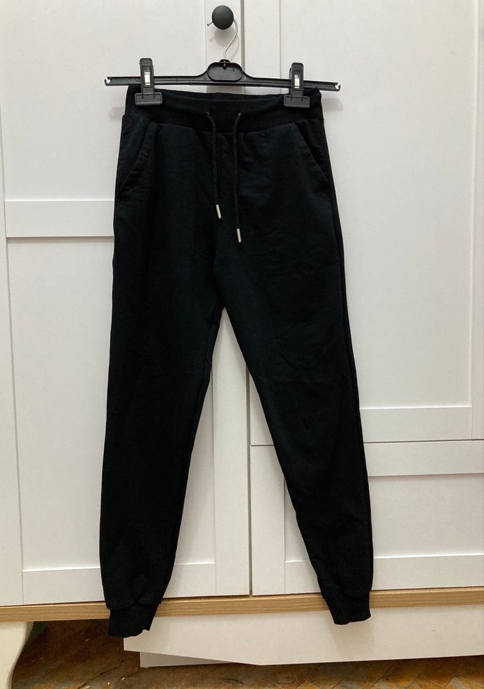 Siyah, dar kesim kadın eşofman altı. Beli lastikli