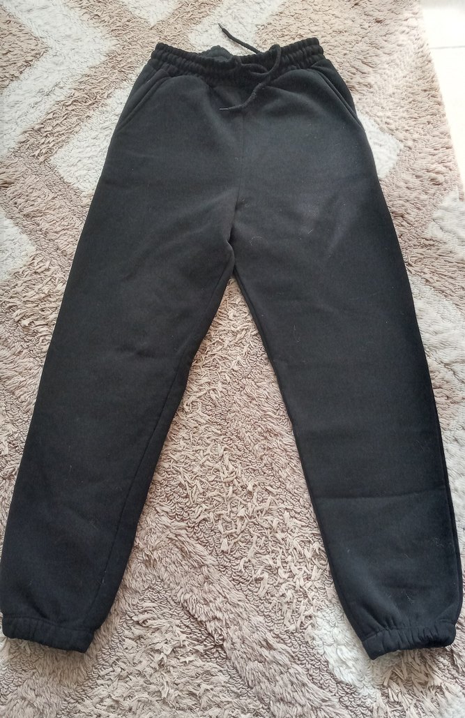 Siyah, rahat kesim, lastikli bel ve bilek detaylı kadın eşofman altı. Yumuşak ve sıcak kumaştan, günlük rahat kullanım için uygundur.