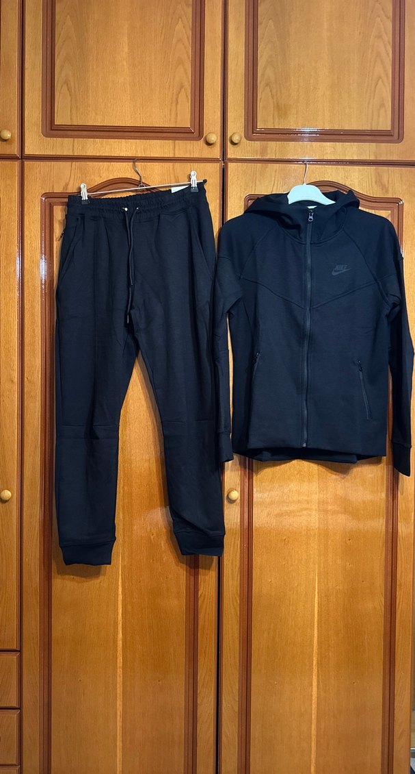 Kadınlar için siyah, fermuarlı ve uzun kollu eşofman takımı. Yumuşak ve sıcak kumaştan, sportif ve günlük kullanıma uygun tarzda.