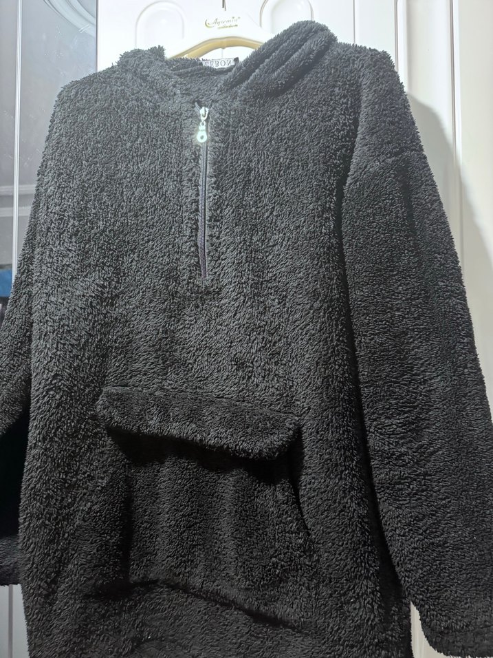 Siyah Kadın Fermuarlı Sıcak peluş sweat