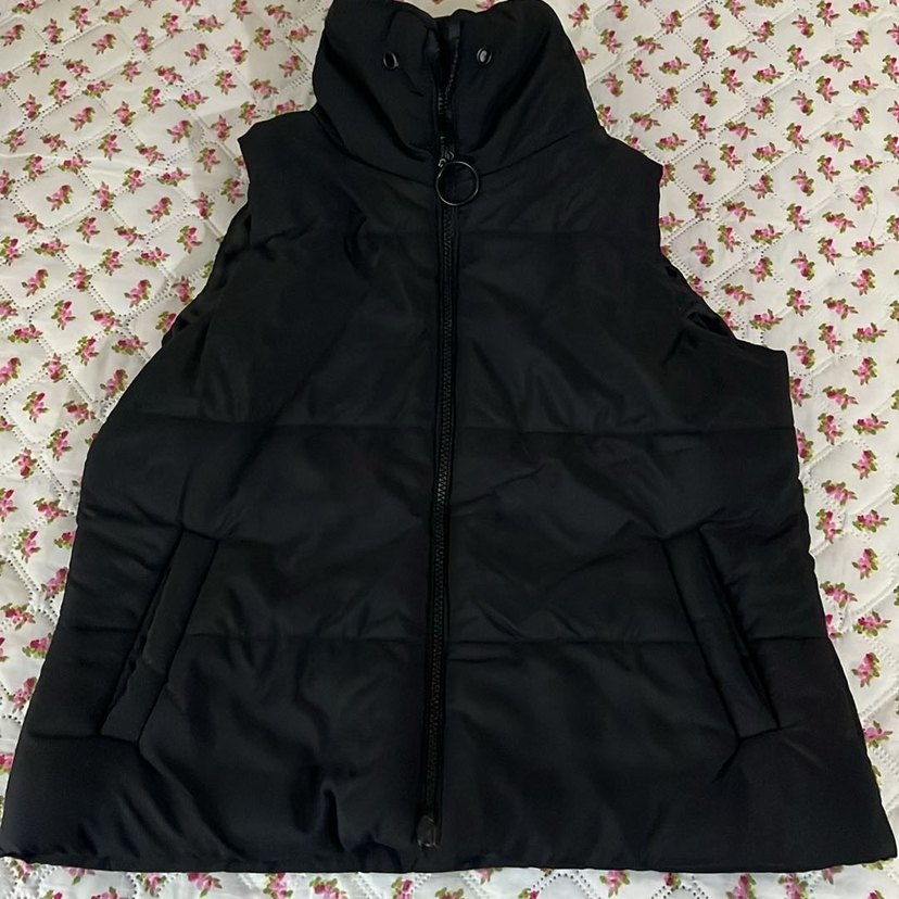 Siyah, fermuarlı, yüksek yakalı ve kolsuz yelek bir defa kullanıldı temiz sorunsuz defosuz S/M/L bedenlere uygundur 36/38