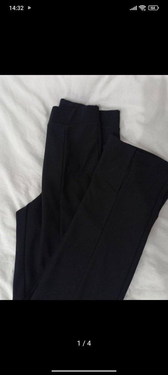 Siyah, fit kesim, uzun boylu kadın pantolonu, sentetik kumaştan olup günlük kullanıma uygundur.