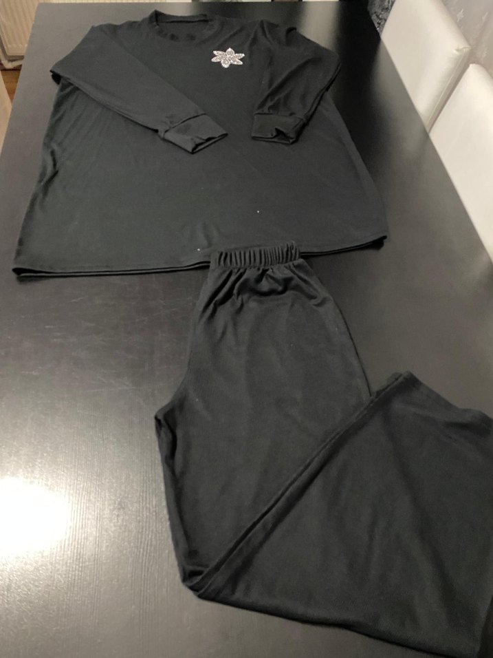 özel dikim Uzun kollu, bisiklet yaka, siyah takımı, yumuşak sentetik kumaştan, günlük kullanım için uygundur.