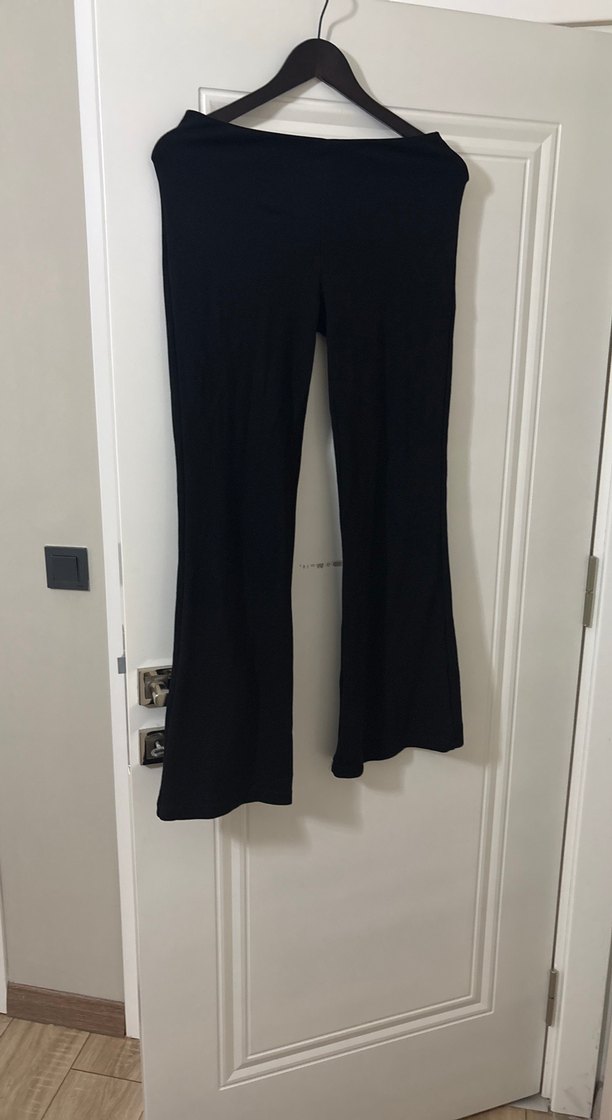 Siyah Kadın Fitilli Midi İspanyol Paça Pantolon - Görsel 8