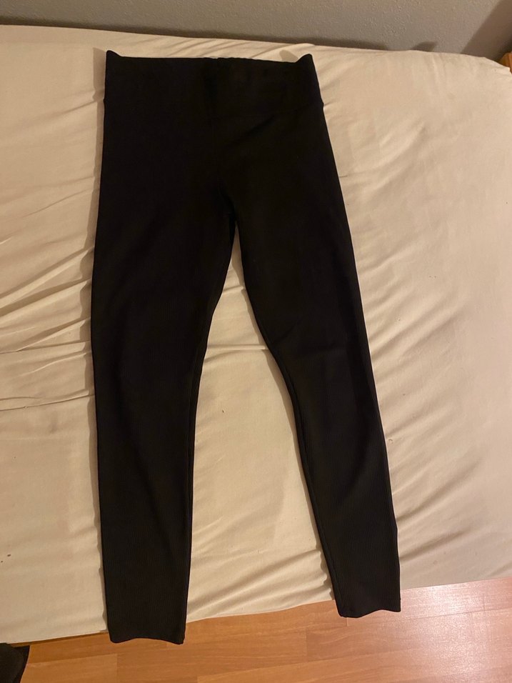 Siyah, sentetik kumaştan yapılmış, günlük kullanıma uygun, dar kesim fitilli tayt. Rahat ve şık bir sokak stili parçası. Az kullanıldı defosu yoktur.