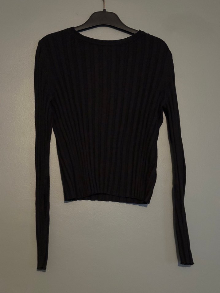 Siyah Kadın Fitilli Uzun Kollu Kazak