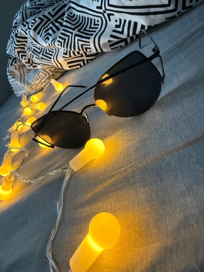 Siyah güneş gözlüğü Üstünde çizgi falan yok çok az kullanıldı artık yüzüme yakışmadığını düşünüyorum Markası Almera kombinler yapan farklı farklı aksesuarlar kullanan biri için kullanışlı olur