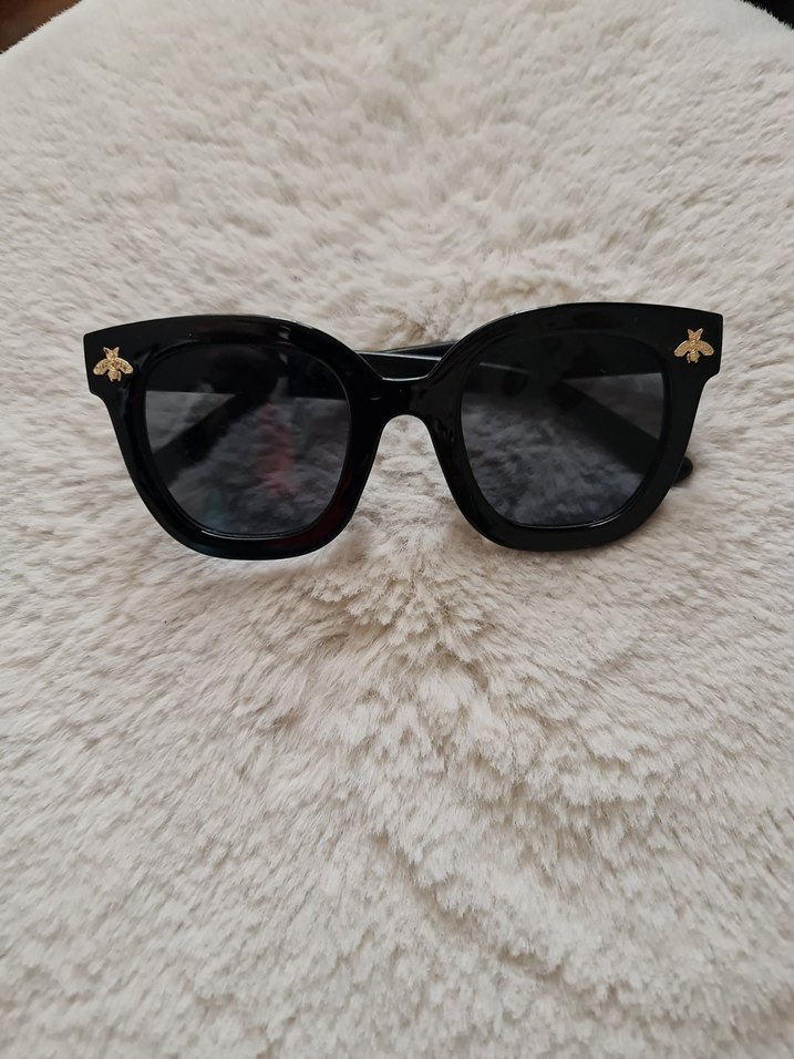 gucci modelinden esintili koyu renkli lenslere sahip siyah gotik tarzda kadın güneş gözlüğü, Parisli bohem havası taşır. ️2. fotoda gucci sembolunun ustu durmaktan biraz pasli gibi ojeyle boyayabilirsiniz yepyeni urundur
