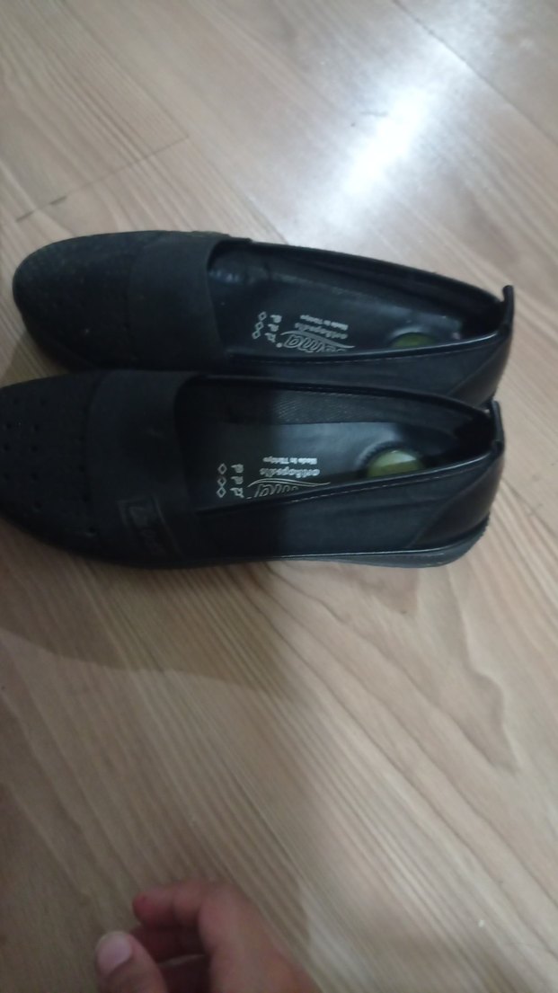 Siyah, dolgu topuklu ve cırt cırtlı kadın ayakkabısı, kauçuk malzemeden üretilmiş, günlük ve iş kullanımı için uygun.