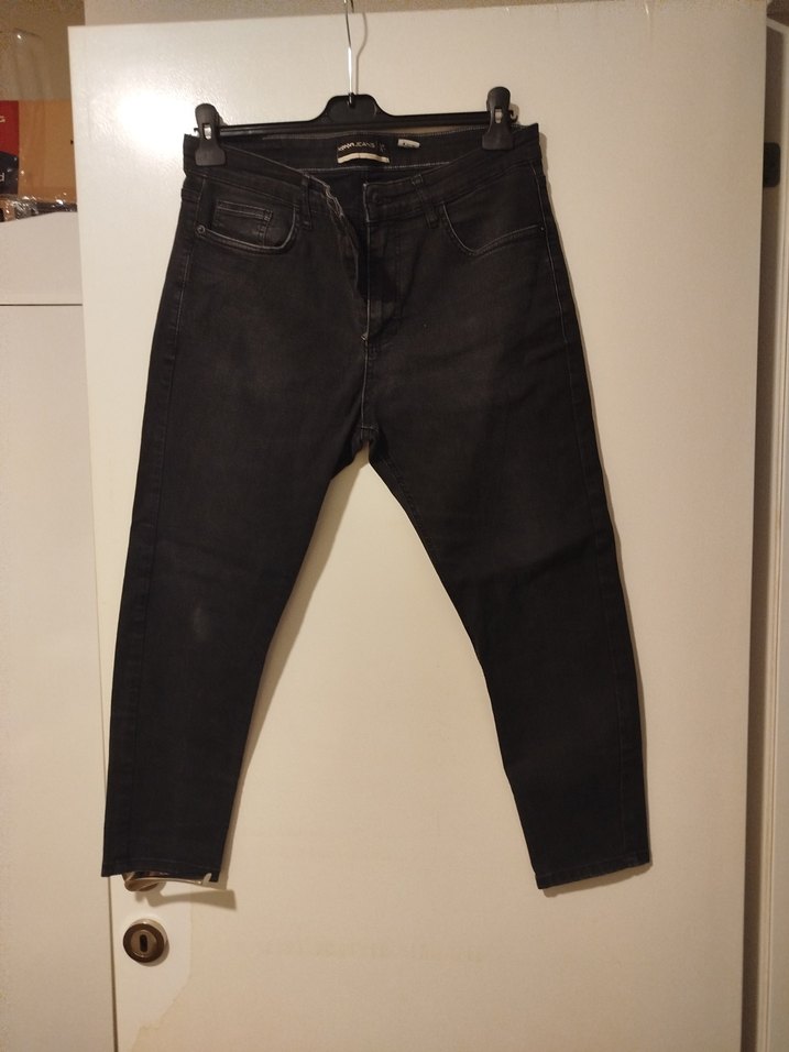 Siyah, desensiz, normal boy ve regular fit kot pantolon. Günlük kullanıma uygun, rahat ve şık bir sokak stili sunar.
