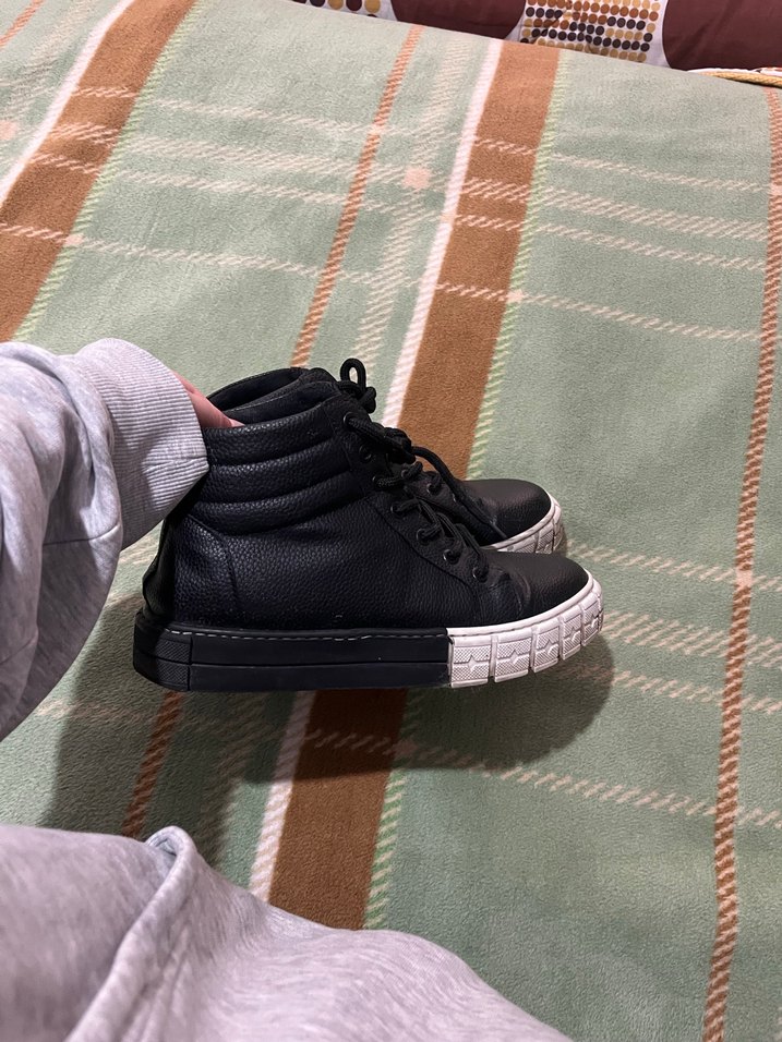 Siyah blok topuklu, volan detaylı kadın spor ayakkabısı. Kauçuk tabanlı, günlük kullanıma uygundur. Rahat ve trend görünümlü.