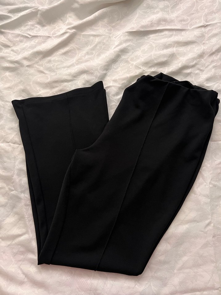 Bir kusuru yok. Siyah ispanyol kesim kumaş pantolon, uzun boyda ve düz desensizdir. Günlük kullanıma uygun, rahat ve şık stil sunar.