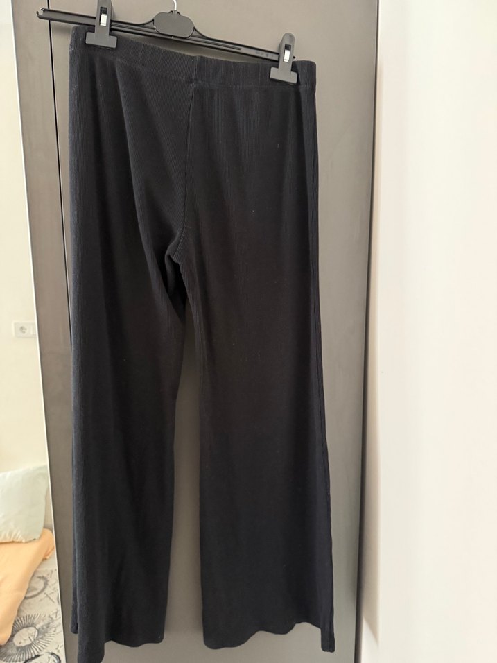 Siyah, midi boy, rahat kesim kadın kumaş pantolon. Sentetik kumaştan üretilmiş, günlük rahat kullanıma uygun sade ve şık tasarım.