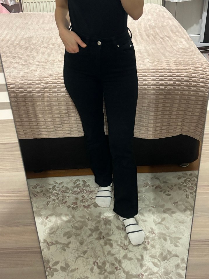 Siyah renkli,regular fit kadın jean pantolon. Denim kumaştan, gündelik kullanım için rahat kumaşı yumuşak.