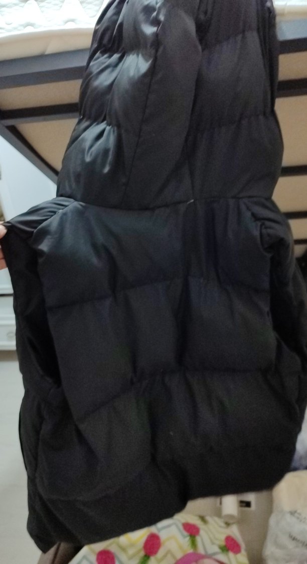 Siyah, kapitone, kolsuz, balıkçı yaka ve fermuarlı kadın yelek. Sentetik kumaştan, rahat ve sokak stiline uygun günlük kullanım için ideal.
