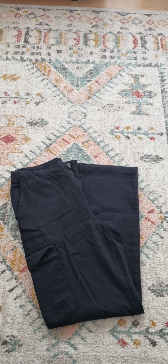 Siyah Kadın kargo pantalon düz kesim wode leg