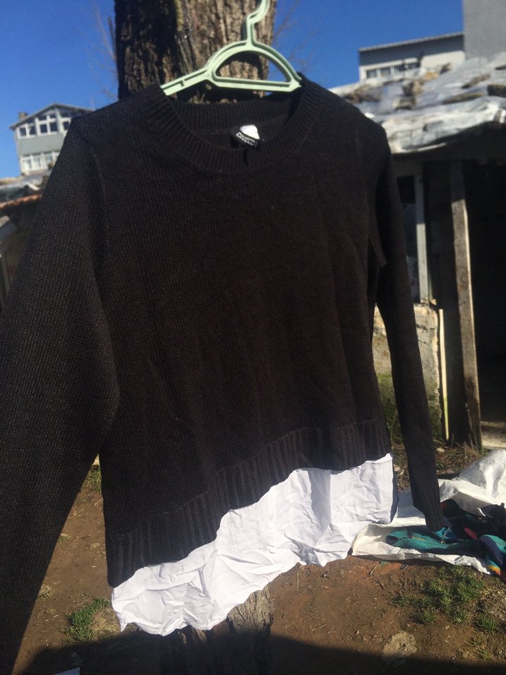 Siyah renkli, pamuklu, kadın kazak. Uzun kollu, yuvarlak yaka ve rahat kesimlidir. Günlük sokak stili için uygundur.