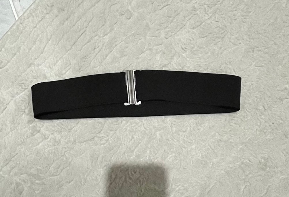 Siyah kemerli kadın kemeri, minimalist tarzda, yumuşak ve sıcak kumaş ile sade gümüş tokalı. Lastik kemer