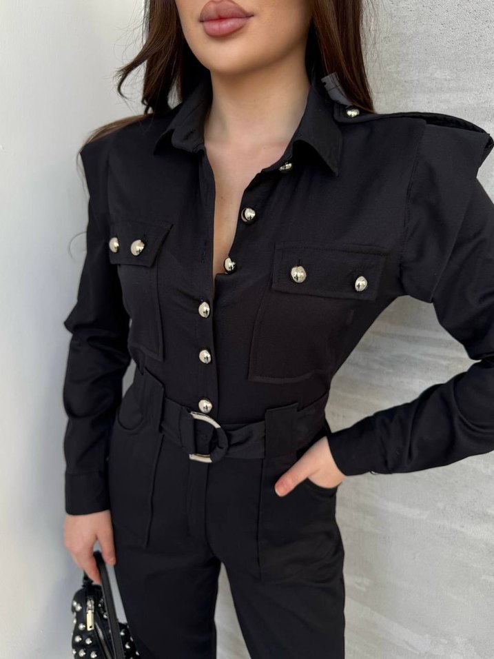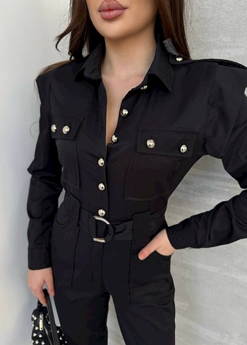 S -m-l mevcut. Siyah renkli, uzun kollu, kemerli tulum . Fitted kesim