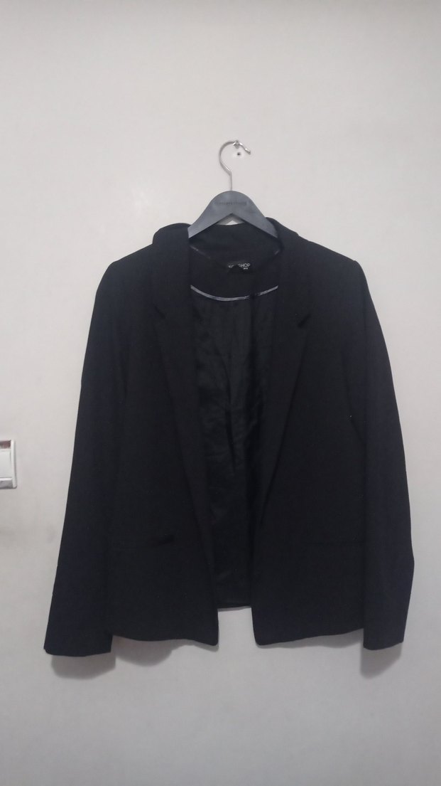 Topshop marka M/38 beden Siyah kumaştan, notched lapel yaka ve uzun kollu kadın blazer. Normal midi boyda, ofis için minimalist ve normcore tarzda, desen içermeyen rahat kesim(boy;61cm/iki kol altı:49cm )