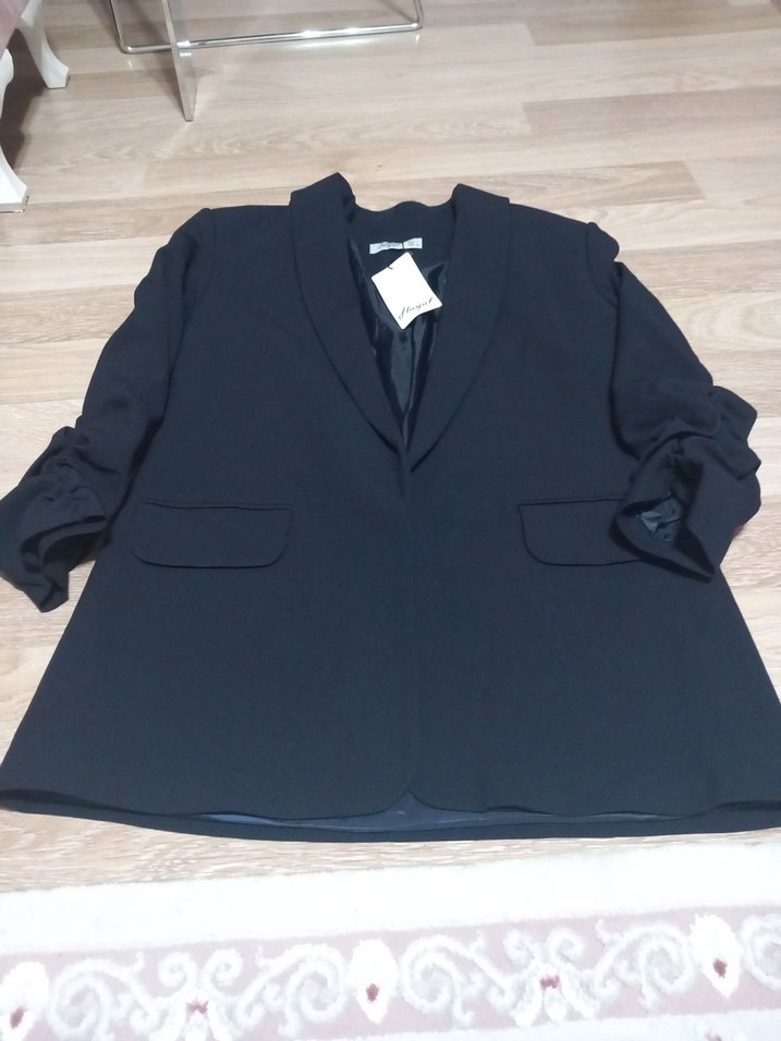 Siyah polyester kumaştan, uzun kollu kadın blazer. Ofis için uygun, normal kesim ve midi boyda, trend casual tarzda. uygulamadan aldım küçük geldi aldıgım fıyata verıyorum