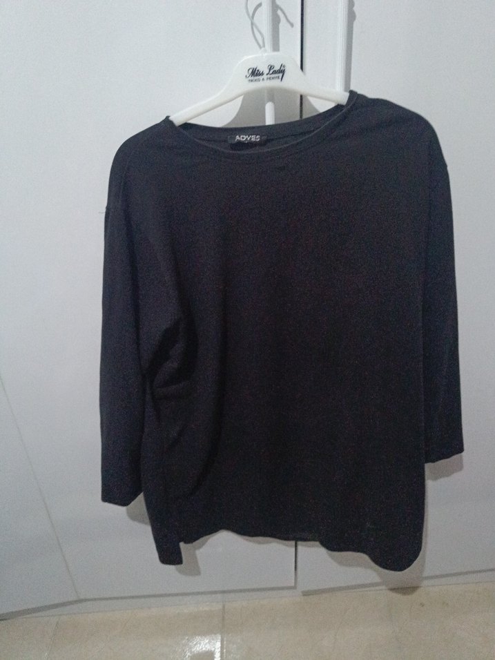 Siyah, keten kumaştan uzun kollu, yuvarlak yaka ve salaş kesime sahip midi uzunlukta kazak. Minimalist ve günlük kullanıma uygun.