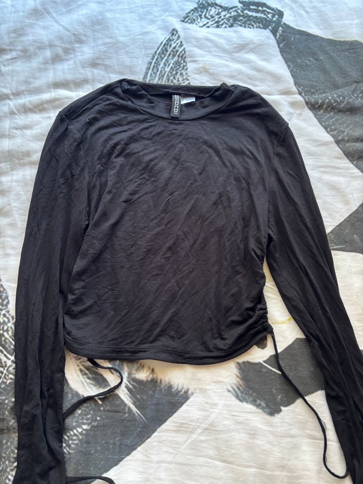 Keten kumaştan, uzun kollu ve bisiklet yaka siyah kadın bluz sırtı açık ve alttan bağlamalı günlük kullanım için trend athleisure tarzı sunar. ✨