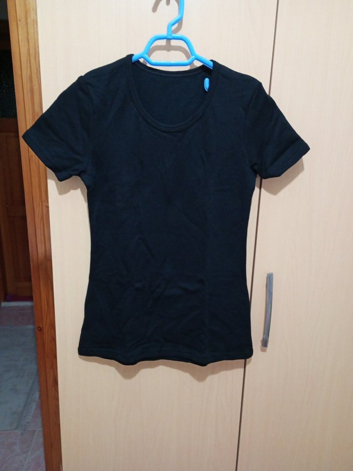 Siyah, pamuklu kumaştan yapılmış, kısa kollu ve bisiklet yaka, vücuda oturan kadın tişörtü. Günlük kullanıma uygun sade ve rahat bir modeldir.