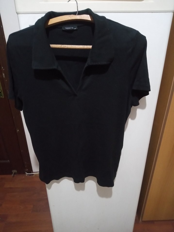 polo yakalı ve kısa kollu siyah kadın bluz, Ofis için uygun, rahat ve şık sokak stili görünümüne sahip. ✨48 50 52 bedenler için uygundur.