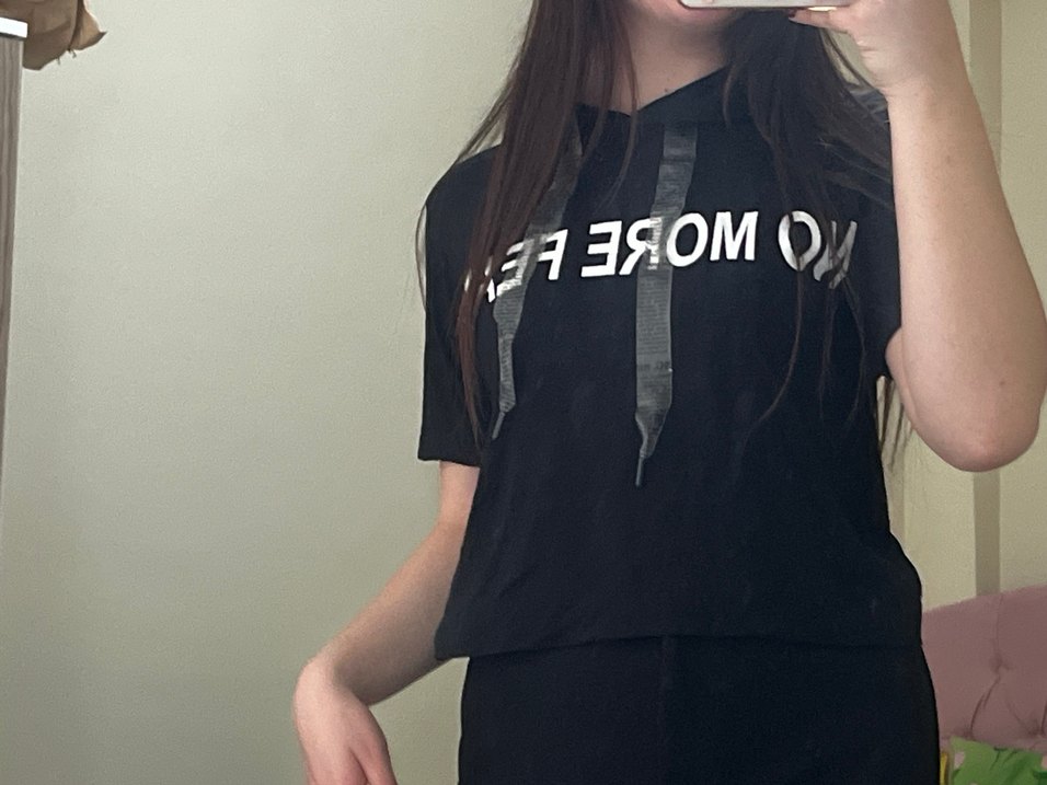 Siyah renkli, kısa kollu ve yüksek yakalı kadın sweatshirtü, baskılı desene sahip. Rahat kesimi ve midi boyuyla günlük kullanıma uygun, yumuşak sentetik kumaştan.