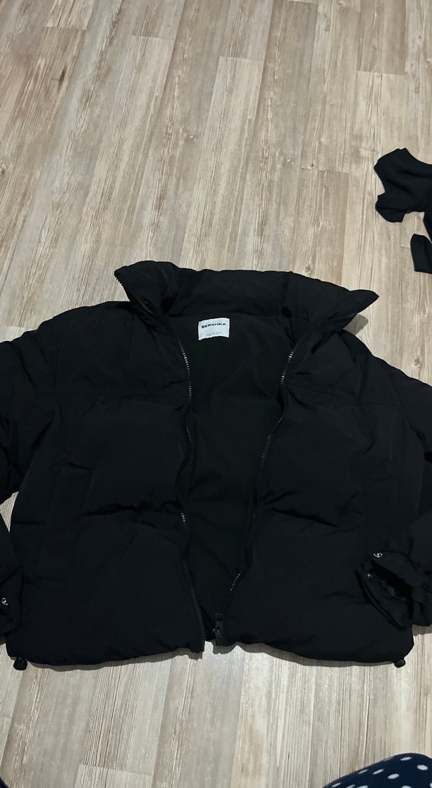 Siyah kadın kışlık mont, yüksek yakalı ve uzun kolludur. Fermuarlı, midi boy ve vücuda oturan kesime sahiptir. Dış mekan kullanımı için uygundur.