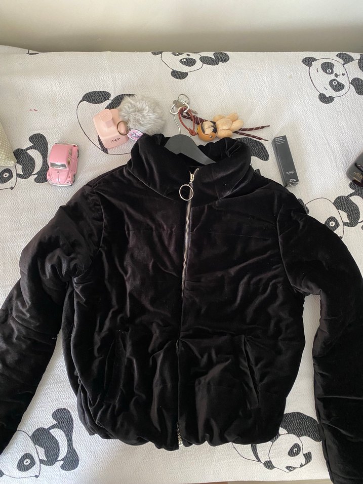 Siyah Kadın Kışlık kadife Polar Ceket