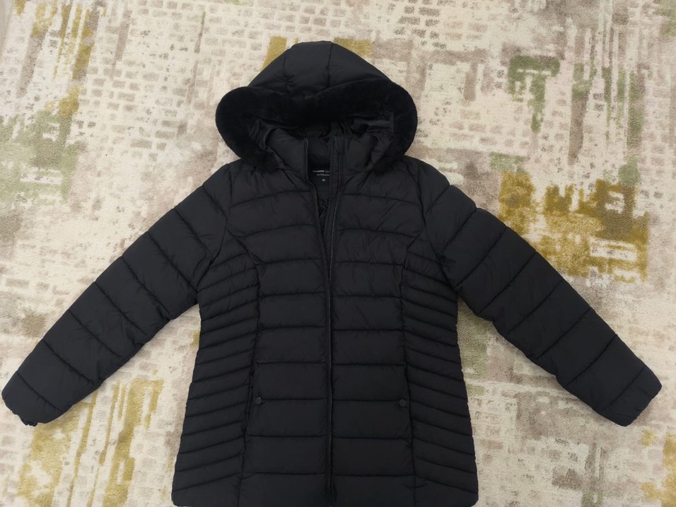 Kürklü detaylı, uzun kollu, siyah kadın kışlık mont. Fitted kesim, midi boy ve rahat dokulu, açık hava için uygun. Çok yeni bir defa giyildi