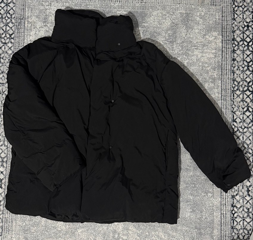 Siyah kadın kışlık mont yüksek yakalı ve uzun kollu. Bol kesim,