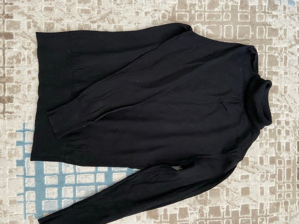 Uzun kollu, balıkçı yakalı siyah sweatshirt. İnce ve yumuşak keten kumaştan, sade ve şık tasarım. Günlük sokak stiline uygundur.