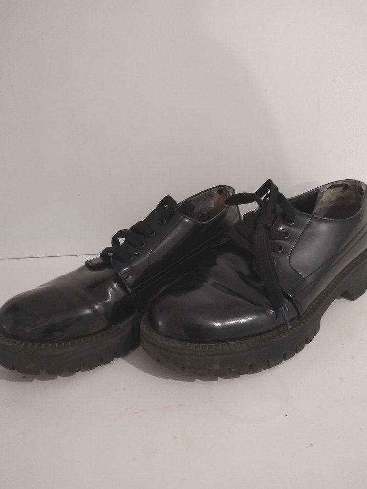 Kauçuk tabanlı, desensiz siyah kadın klasik ayakkabılar. Gotik ve grunge punk tarzında, ofis kullanımı için zahmetsiz şıklık sunar.